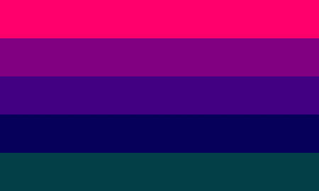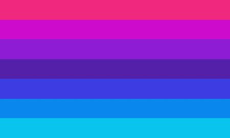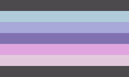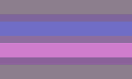 The dark blue stripe represents masculinity, the light blue stripe represents community. The purple represents the androgyne identity, the light pink represents love and the dark pink represents femininity. The flag was initially designed to be less eye straining to view on screens than the most common androgyne flag.