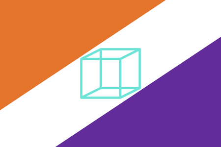 Orange is a lesser known masculine colour, one that doesn't play off the Pink Vs Blue aesthetic of most androgyne flags. Purple, similarly, is a lesser known feminine colour, despite being a mix of masculine colours (red and blue). The white represents an absence of gender, as is on the non-binary flag and the genderqueer flags. The symbol is the Necker Cube, an optical illusion that can look both concave and convex, first proposed as a symbol for the androgyne community by Raphael Carter in 1996. Th teal is a mixture of two colours, both gendered on opposite sides of the binary.